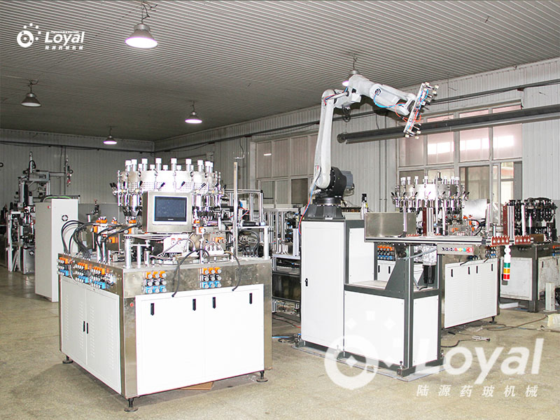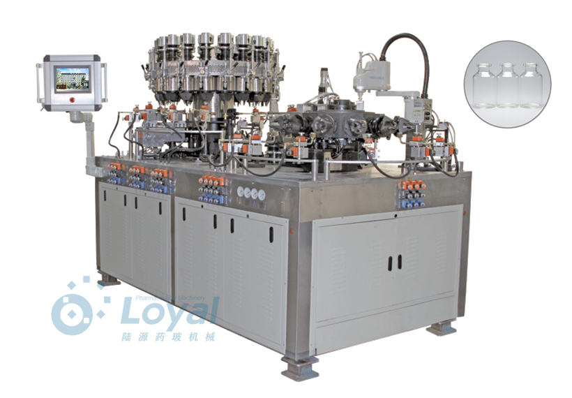 西林瓶生產(chǎn)線包括:自動上管、自動成型、經(jīng)機械手轉(zhuǎn)換至前端檢測線(也叫生產(chǎn)管控)、檢測線檢測的項目:1、瓶口內(nèi)外徑 2、瓶身長短 3、瓶身外徑 4、瓶口邊厚 5、瓶底內(nèi)凹尺寸檢測;經(jīng)檢測后的合格品再用機械手夾盤轉(zhuǎn)換至退火爐網(wǎng)帶上,經(jīng)高溫減除應力后再降溫,通過氣動吸盤將回火后的小瓶轉(zhuǎn)換至后端檢測線,后端檢測(也是重檢也叫終檢),經(jīng)后端拍照檢測項目